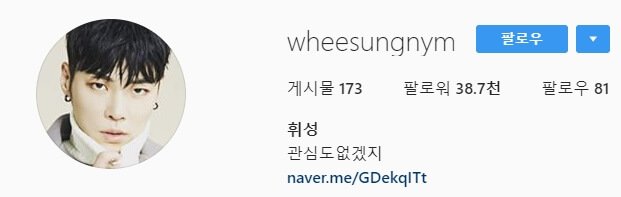 휘성은 23일 자신의 SNS 프로필을 한 웹페이지 주소와 "관심도 없겠지"라는 말로 교체했다.